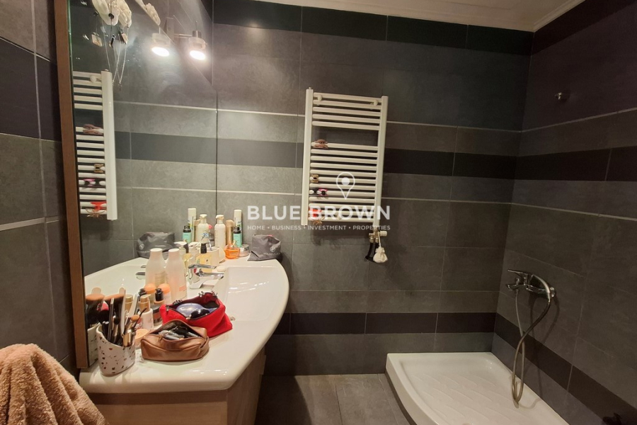 Die Wohnung ist hell und nach vorne ausgerichtet und besteht aus zwei geräumigen Schlafzimmern, einem Badezimmer, einem zusätzlichen WC, einer Küche und einem komfortablen Wohnzimmer, das ideal zum Entspannen oder für Gäste geeignet ist. Die Böden sind gefliest, während Aluminiumfensterrahmen mit Doppelverglasung für Wärme- und Schallisolation sorgen. Die autonome Heizung mit Gebläsekonvektoren in Kombination mit Klimaanlage sorgt das ganze Jahr über für Komfort.