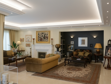 Αποτελείται από έναν μεγάλο κεντρικό χώρο, με εύρυθμη διαρρύθμιση και επιβλητικά μάρμαρα Διονύσου, που φιλοξενεί το σαλόνι, την τραπεζαρία και την ανοιχτή, πλήρως εξοπλισμένη κουζίνα. Εσωτερικά, βρίσκονται τα 3 υπνοδωμάτια, εκ των οποίων το ένα master, τα 2 μπάνια και το W/C.