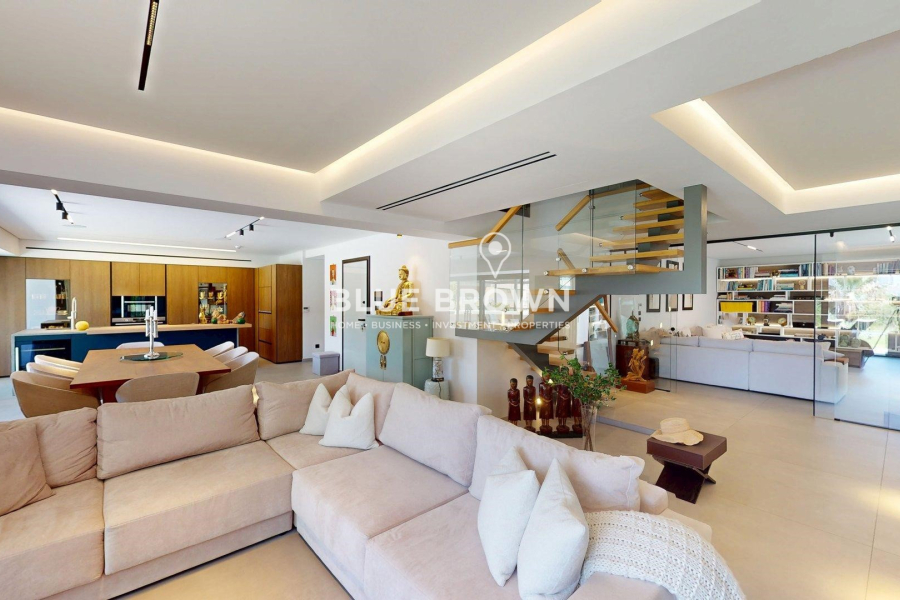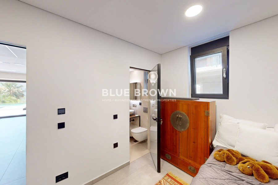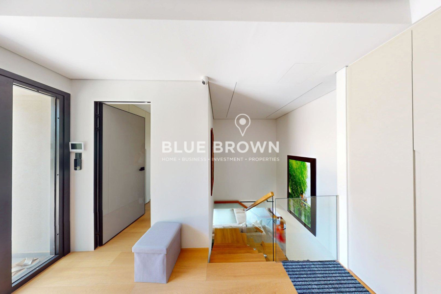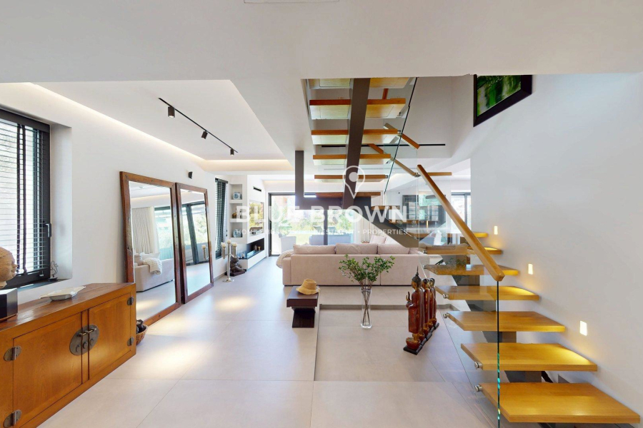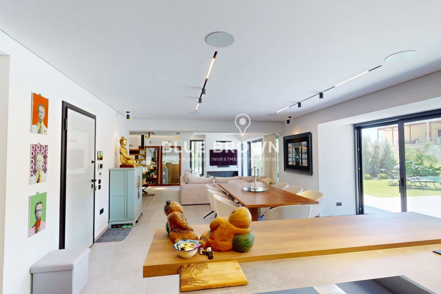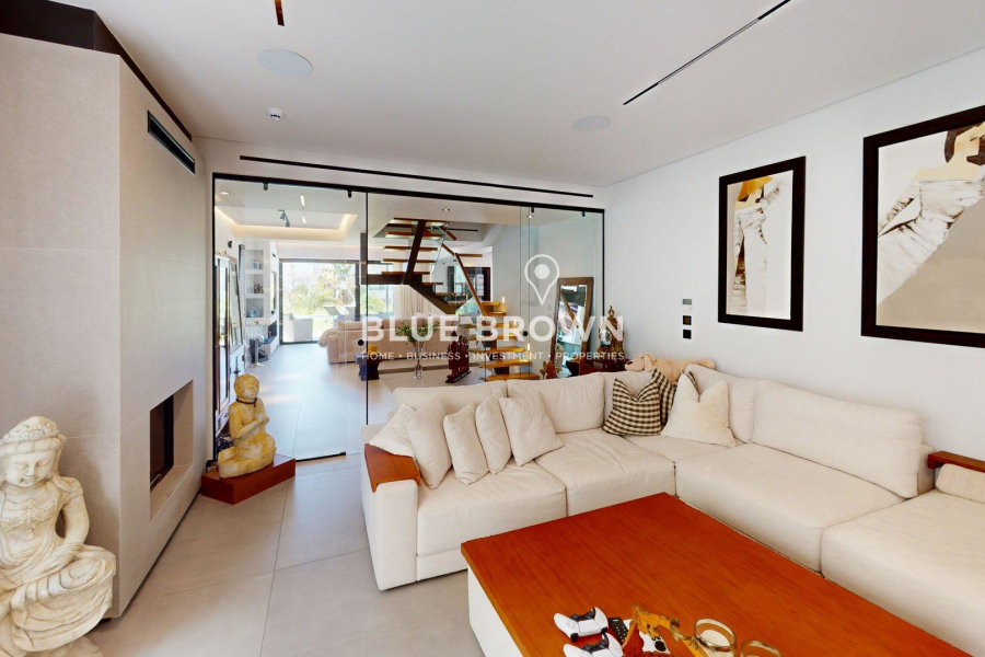 Εσωτερικά, το σπίτι είναι επιπλωμένο με ποιοτικά έπιπλα και έχει προσεγμένα φινιρίσματα, τα οποία αναδεικνύονται από το άφθονο φυσικό φως και τον κομψό αρχιτεκτονικό σχεδιασμό. Το ακίνητο περιλαμβάνει πρακτικές παροχές, όπως αποθηκευτικό χώρο 20 τ.μ., ο οποίος χρησιμοποιείται εν μέρει και ως laundry, προηγμένα ενεργειακά συστήματα και εντυπωσιακή ενεργειακή απόδοση Α+, εξασφαλίζοντας βιωσιμότητα και άνεση.