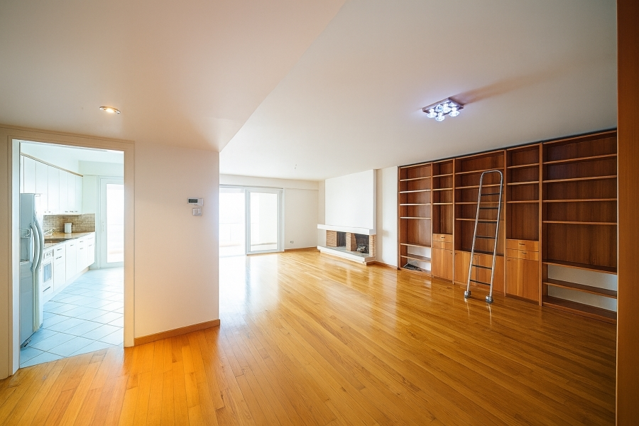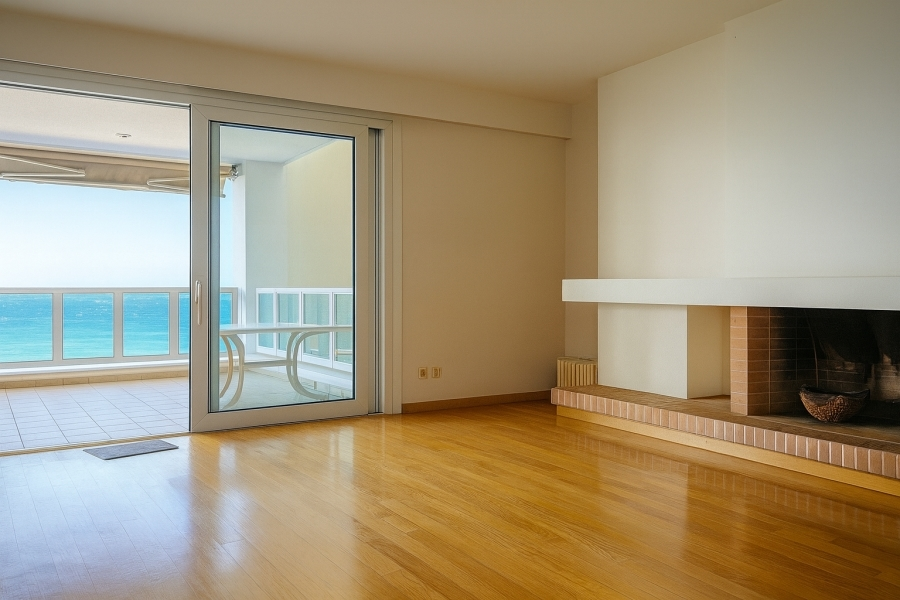 This bright, airy, and elegant apartment offers stunning sea views — and views of Mount Hymettus from the rear balconies — combining comfort, safety, and an exceptional location. It consists of two bedrooms, one of which is a master with its own en-suite bathroom and walk-in closet, two bathrooms, one WC, an independent kitchen, and a spacious living room with a fireplace. The floors are wooden, the window frames are aluminum with double glazing, and the apartment is in excellent condition.