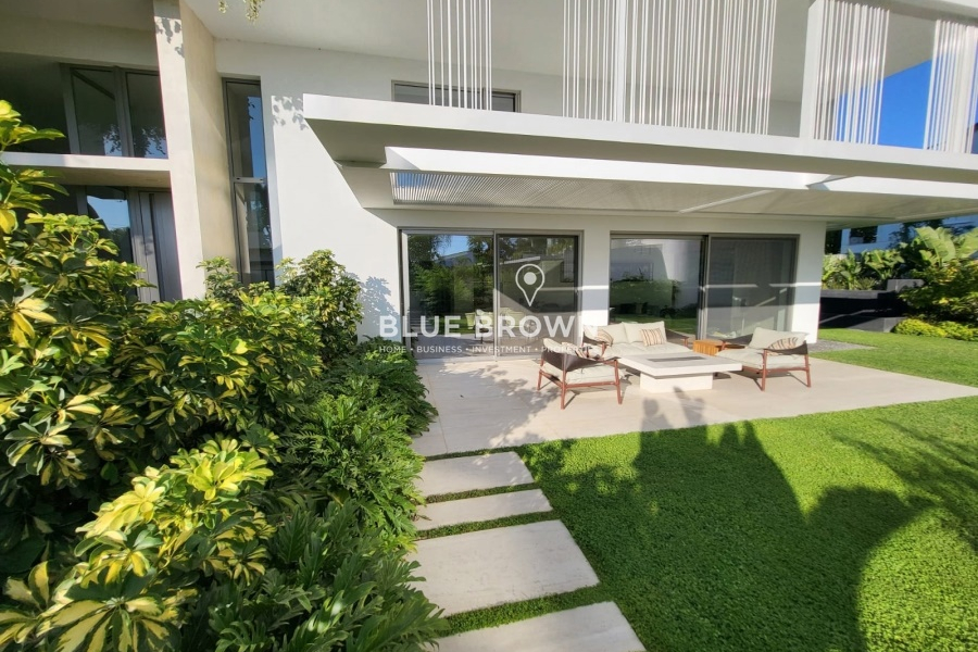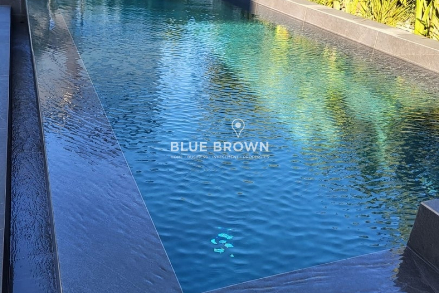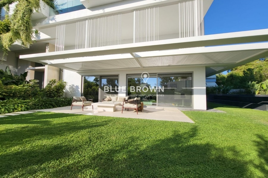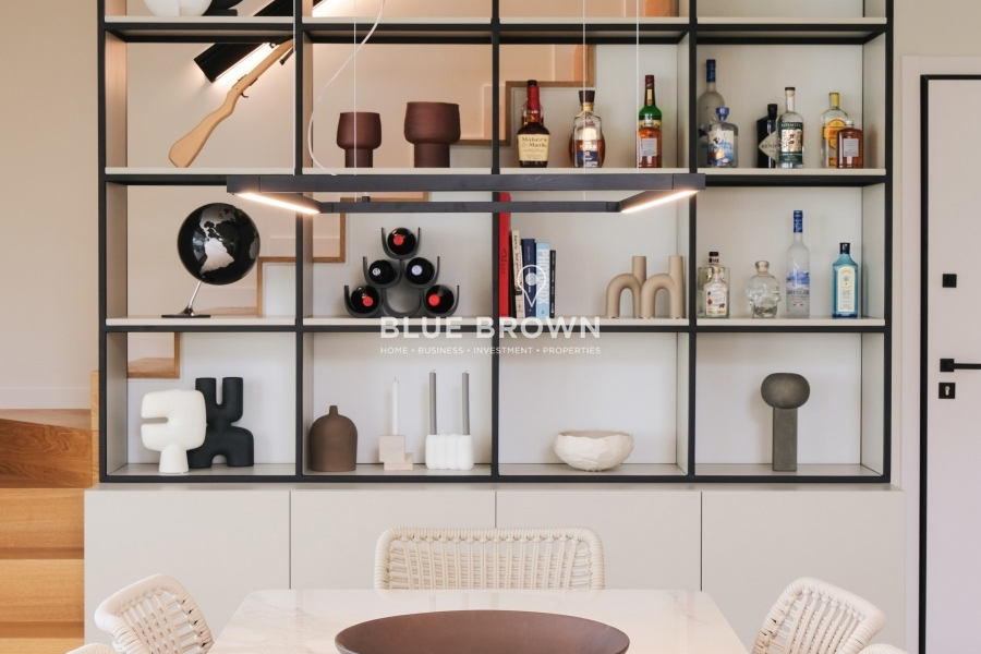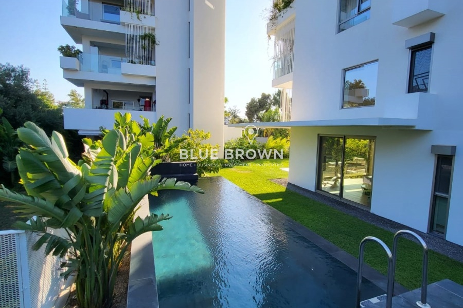 The property features a private-use landscaped garden of 391 sq.m. and a 19 sq.m. private heated swimming pool with a counter-current swimming system, while the complex also offers a 2,500 sq.m. communal garden with a swimming pool.