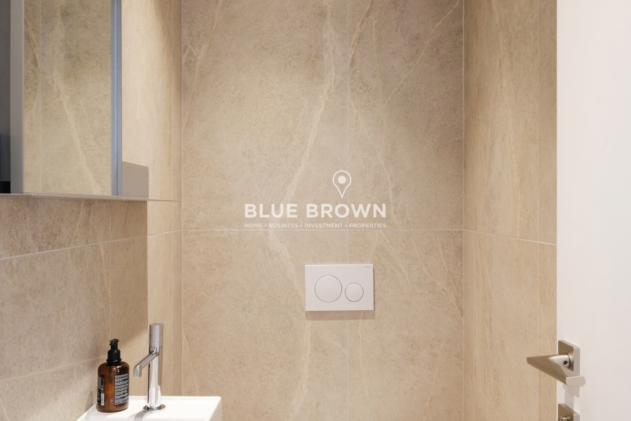 Ground Floor (123 sq.m.): Open-plan living and dining area, a fully equipped kitchen with integrated Miele appliances, guest WC, and one master bedroom with en-suite bathroom and walk-in closet.