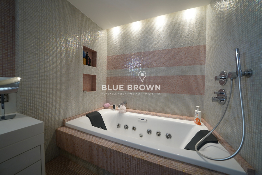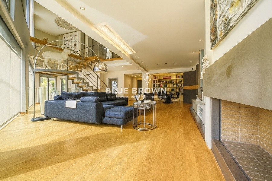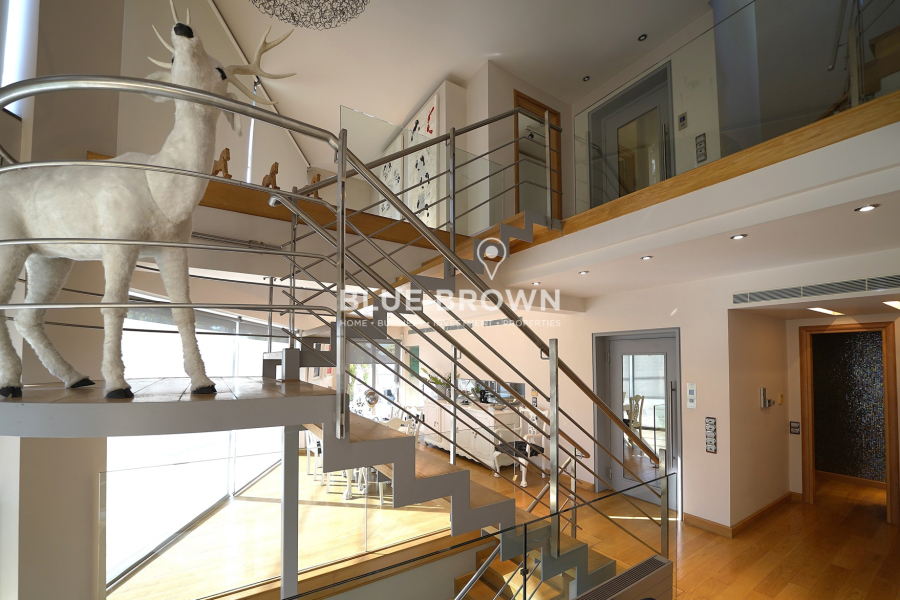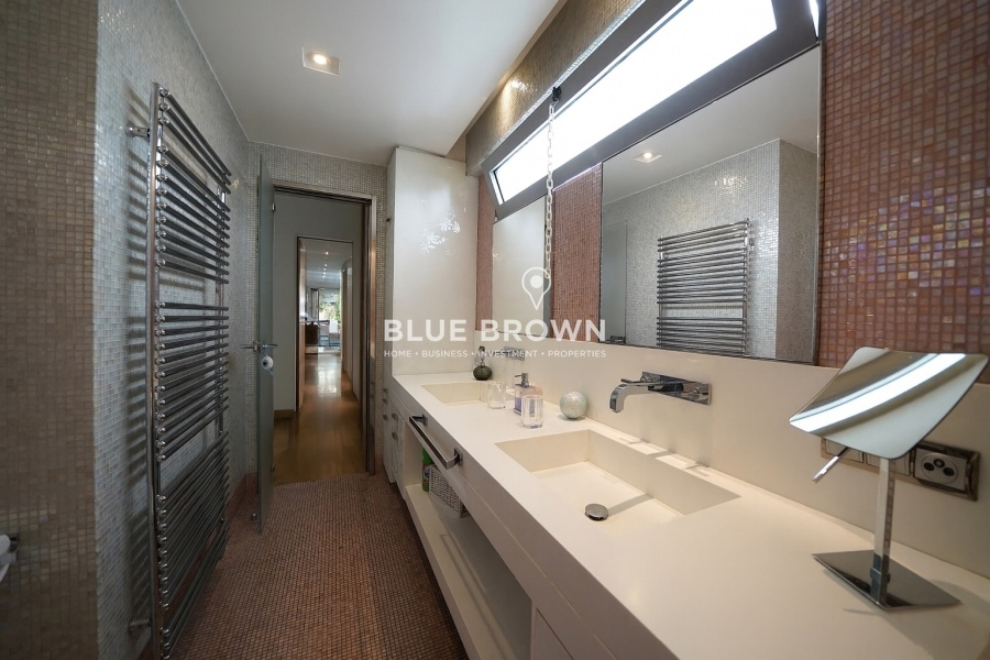 The residence is developed across four levels and has been designed with a strong emphasis on natural light and the seamless flow between indoor and outdoor spaces. The ground floor impresses with its bright reception area that opens effortlessly to the outdoor space and private swimming pool, creating an atmosphere of complete relaxation and embodying the essence of indoor-outdoor living. The central Italian entrance door and the impressive internal staircase serve as architectural highlights, adding continuity and elegance to all floors. Large floor-to-ceiling windows and wide openings allow abundant natural light to flood the interiors, while electric blinds provide shading where needed.