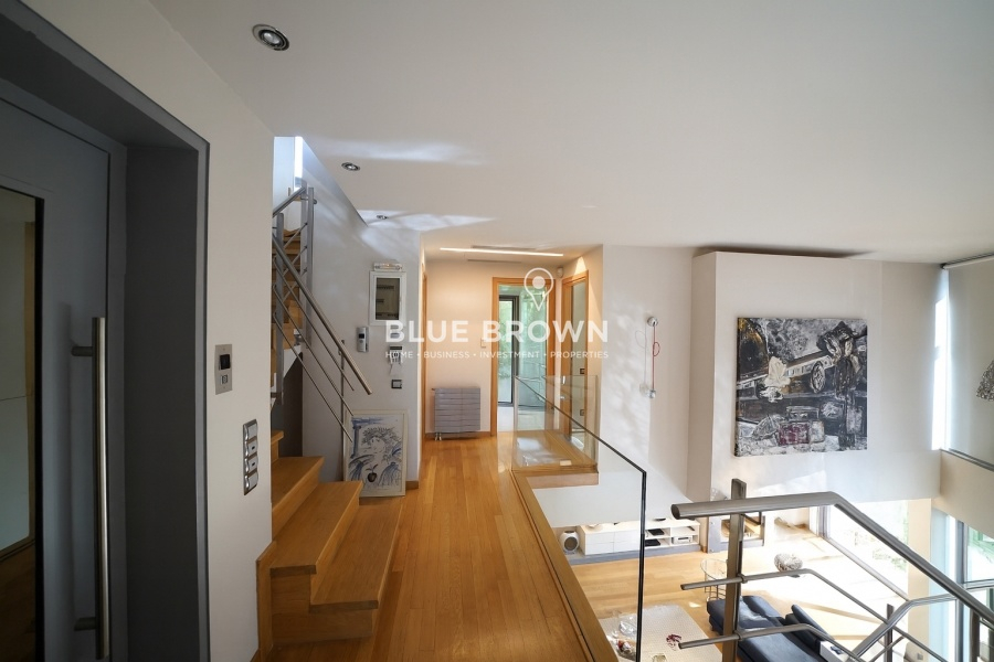 The property offers two entrances through the garden for convenient access, as well as an additional entrance through a secured garage gate, ensuring maximum privacy and safety. The residence is equipped with an elevator connecting all floors, along with numerous modern amenities such as fireplaces, air conditioning, a solar water heater, storage rooms, and triple-glazed windows. Boasting sea views, exceptional construction quality, and a prime location just 7.5 km from the center of Athens and near the port of Piraeus—close to schools, marinas, and public transportation—this home is an ideal choice for families and investors alike.