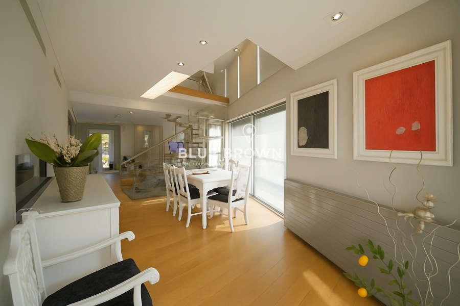 High-quality Schuco frames enhance the property’s energy efficiency, while offering top-tier security and sound insulation. Three of the four levels feature independent kitchens, ensuring flexibility in the use of spaces and allowing for autonomous living arrangements.
