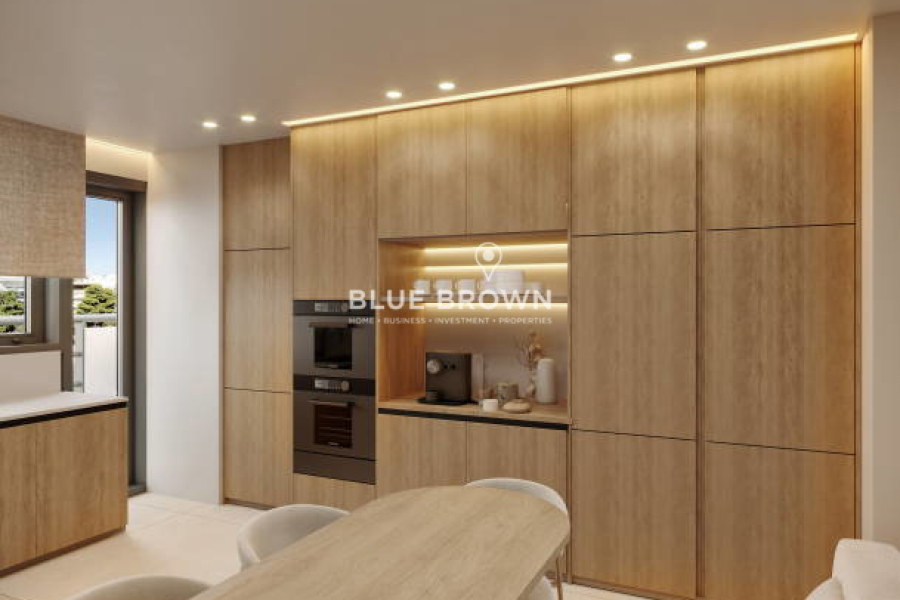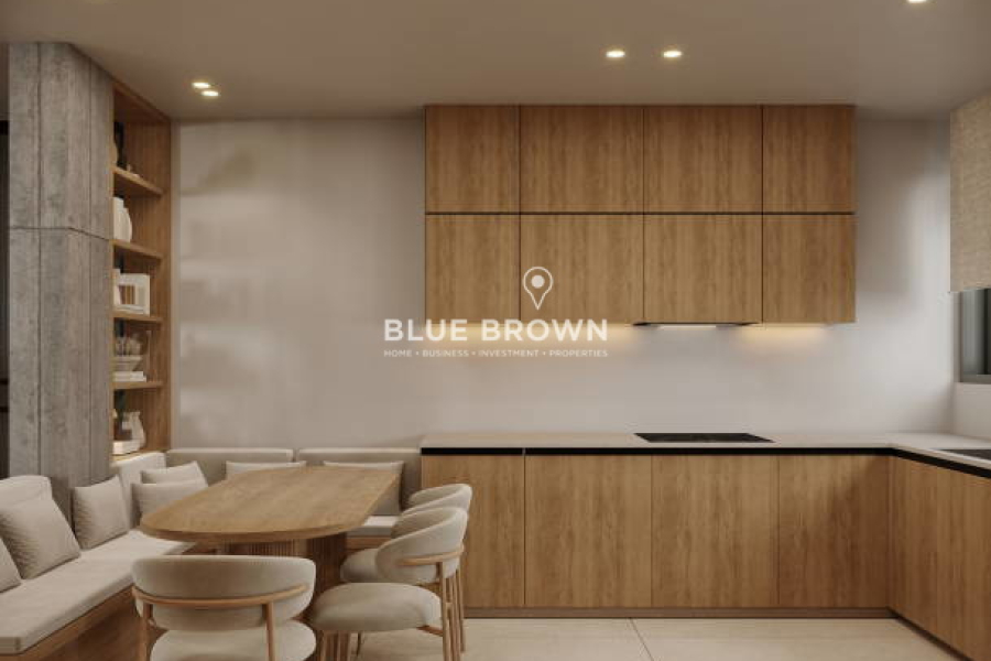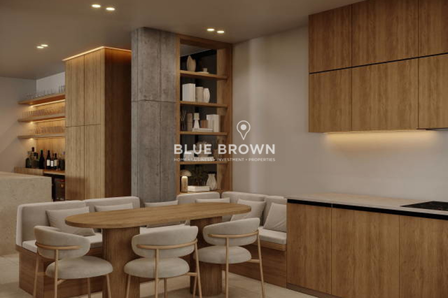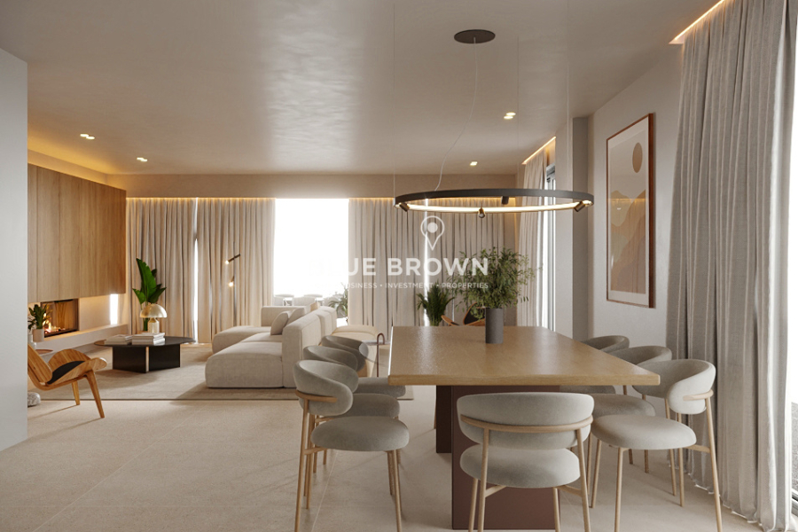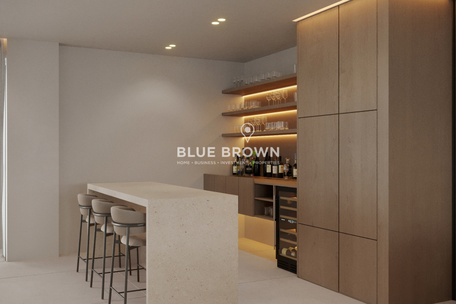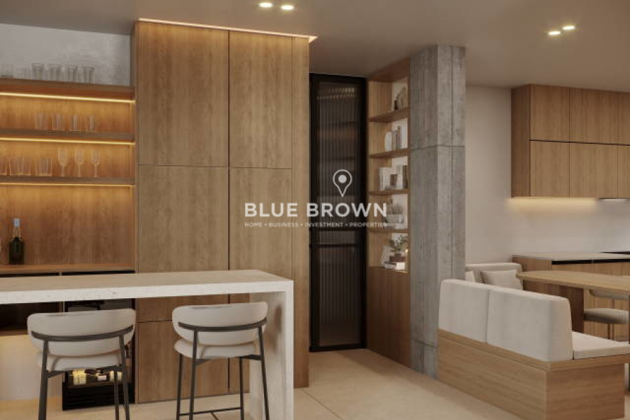 The apartment spans 168 sq.m. and is being transformed into a modern and luxurious residence featuring three spacious bedrooms and three bathrooms, ideal for both comfortable living and entertaining. The bright open-plan living room and kitchen create an impressive living space, while the addition of a private bar area adds a distinctive touch of elegance.